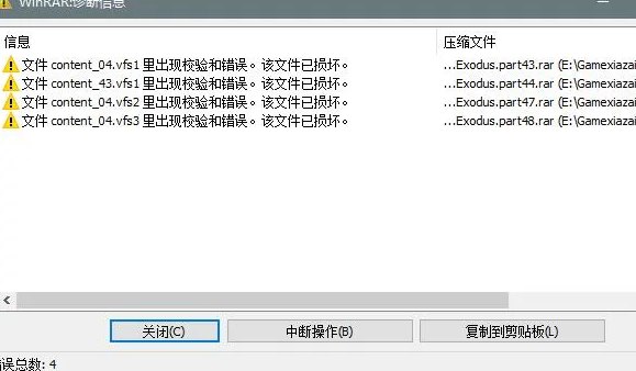 很多机友都遇到过下载的压缩文件解压出错(如下图),面对动辄几个G甚至上百G的资源,好不容易下载下来了却不能用,是一件非常糟心的事情。结果一解压出现十几个文件错误提示没法玩,但最终顺利解决了问题,避免全部重新下载或放弃。今天我就将这个方法分享给大家,希望对大家有所帮助。