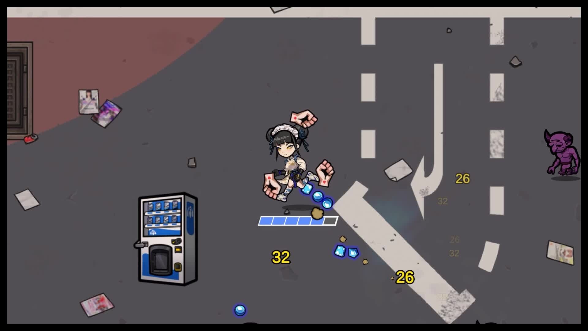 女仆战士必须在敌人源源不断的攻击中生存下来,通过选择不同武器和物品来打造自己的阵容,以击败关卡最后的强大boss,拯救地球和平。